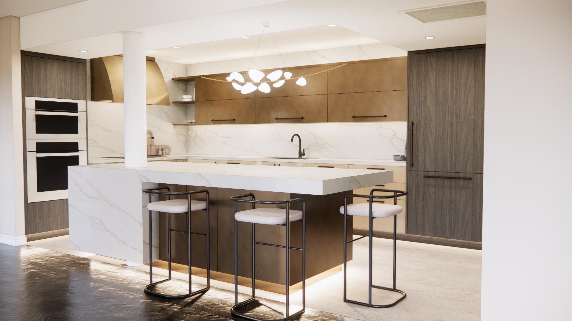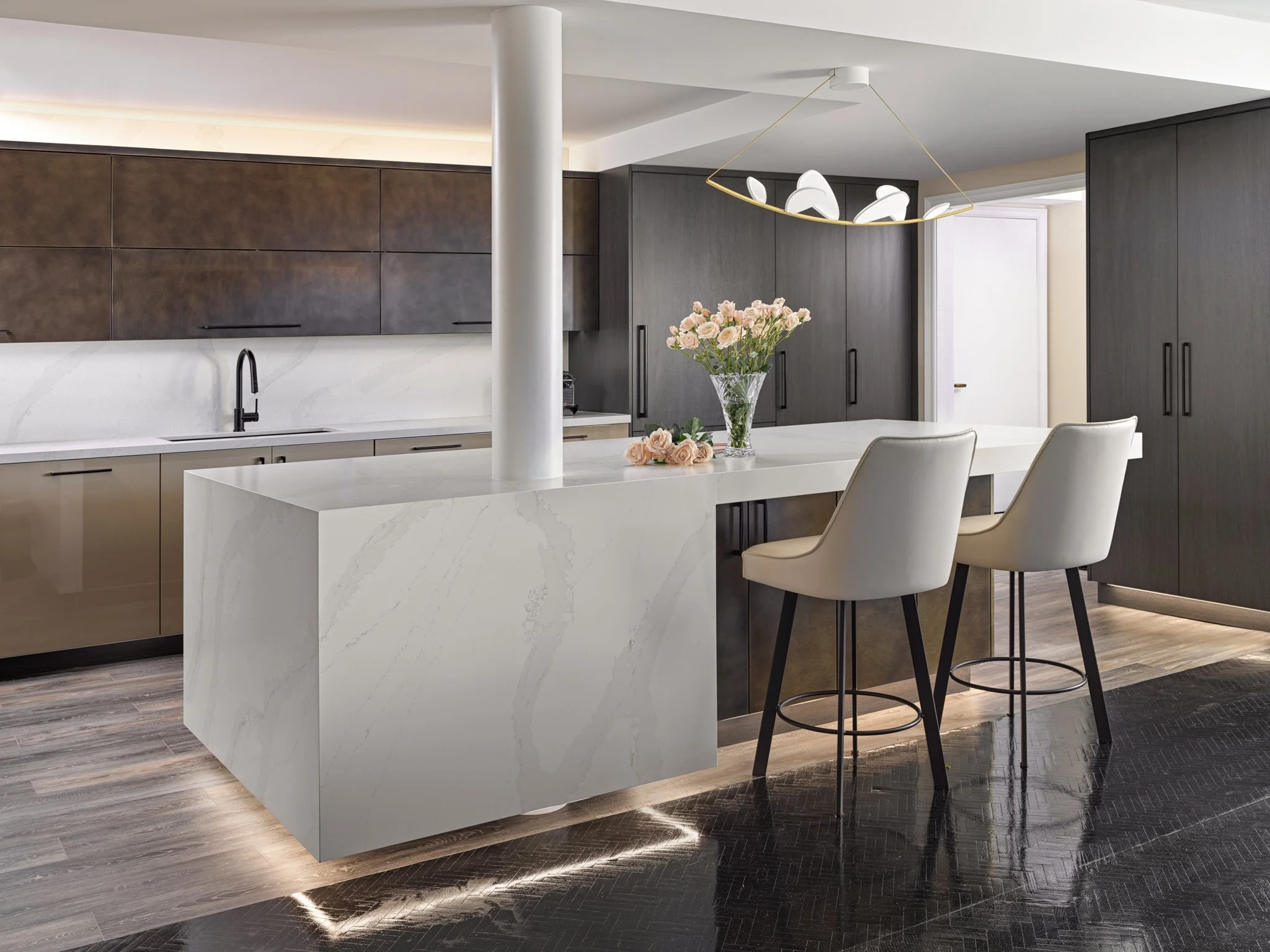 A MASTERCLASS IN SCULPTURAL KITCHEN DESIGN. INTELLIGENT MATERIALS BLENDED GRACEFULLY IN THIS CLASSIC, ARCHITECTURAL CONDO.