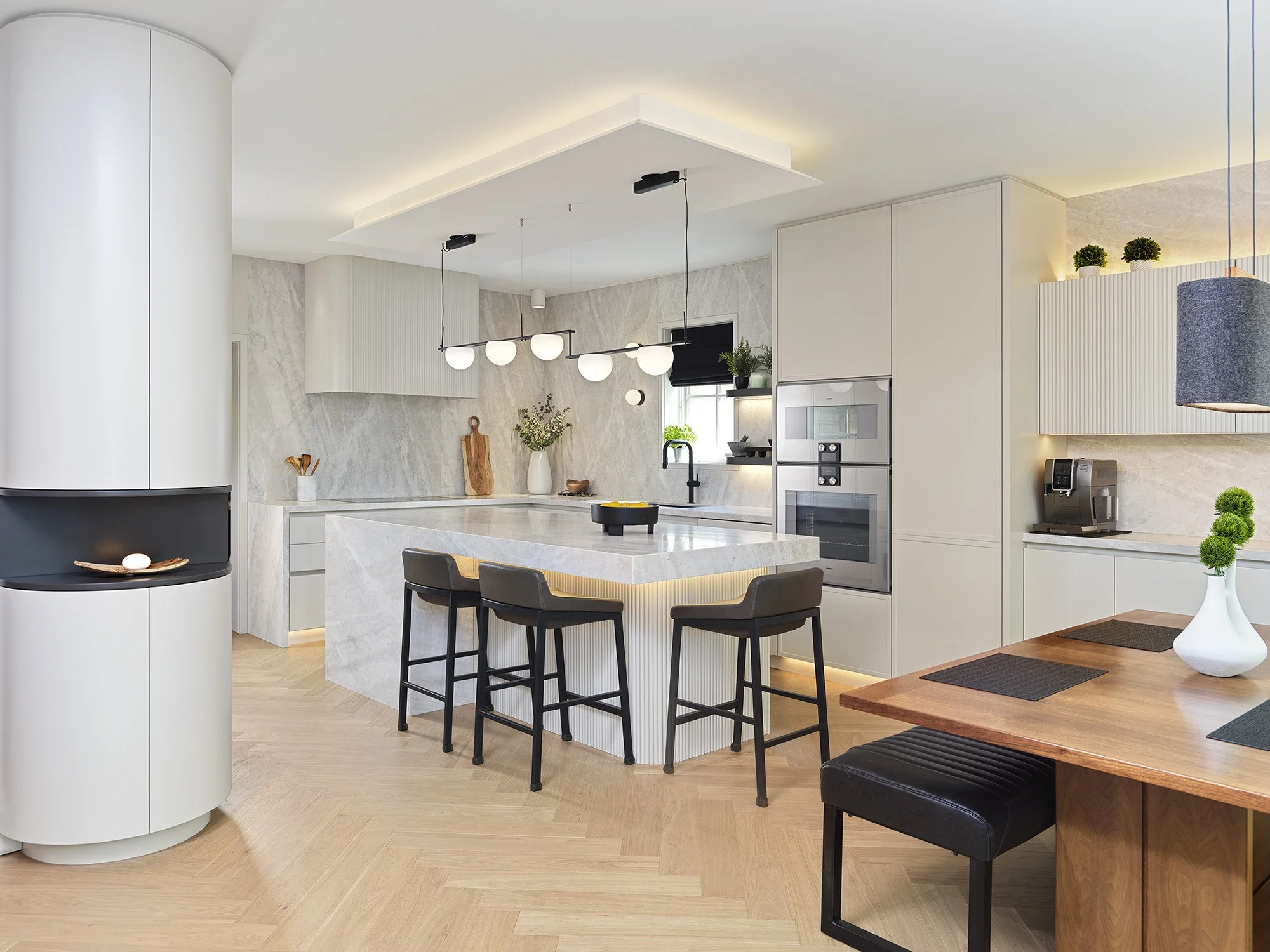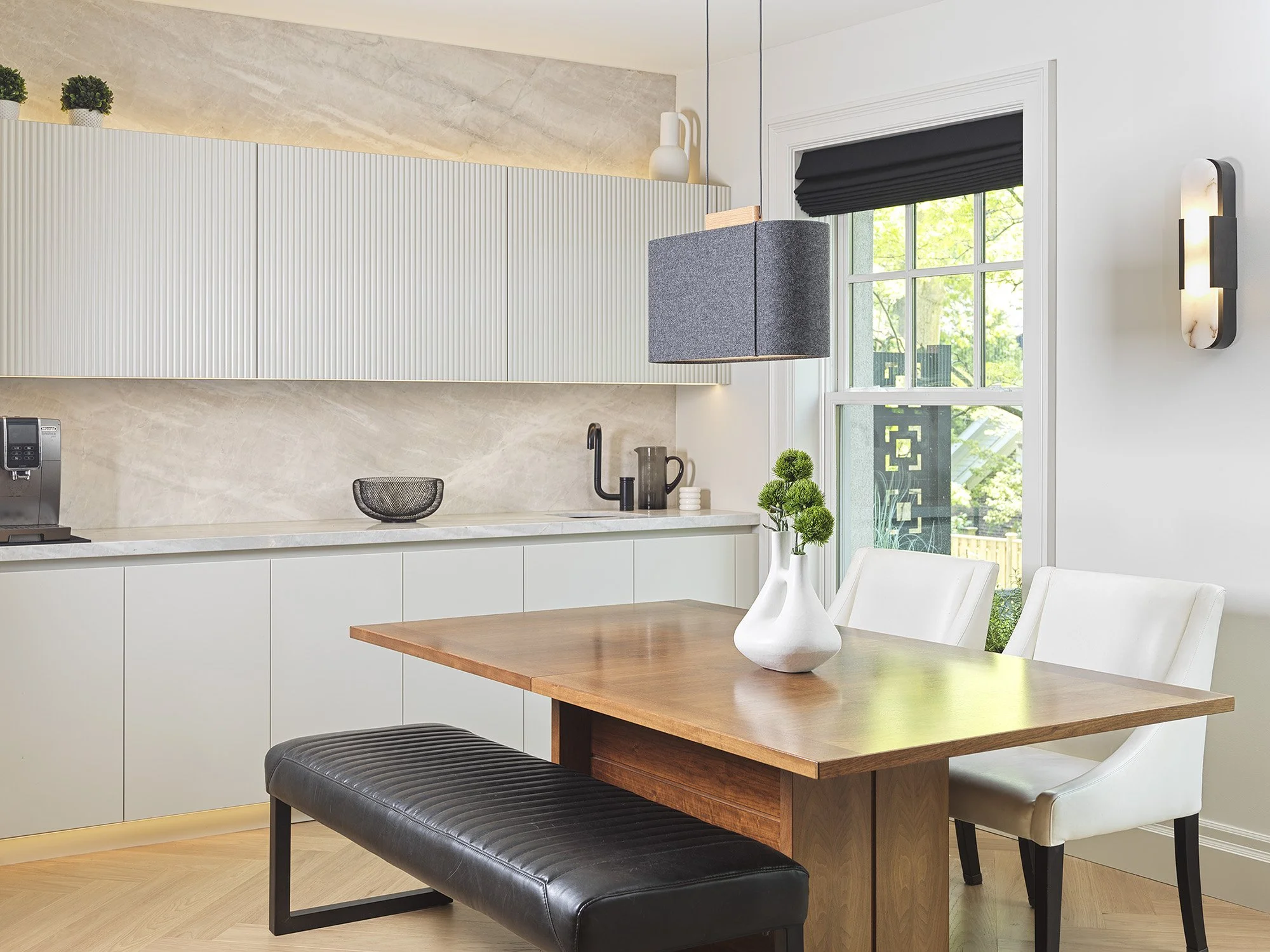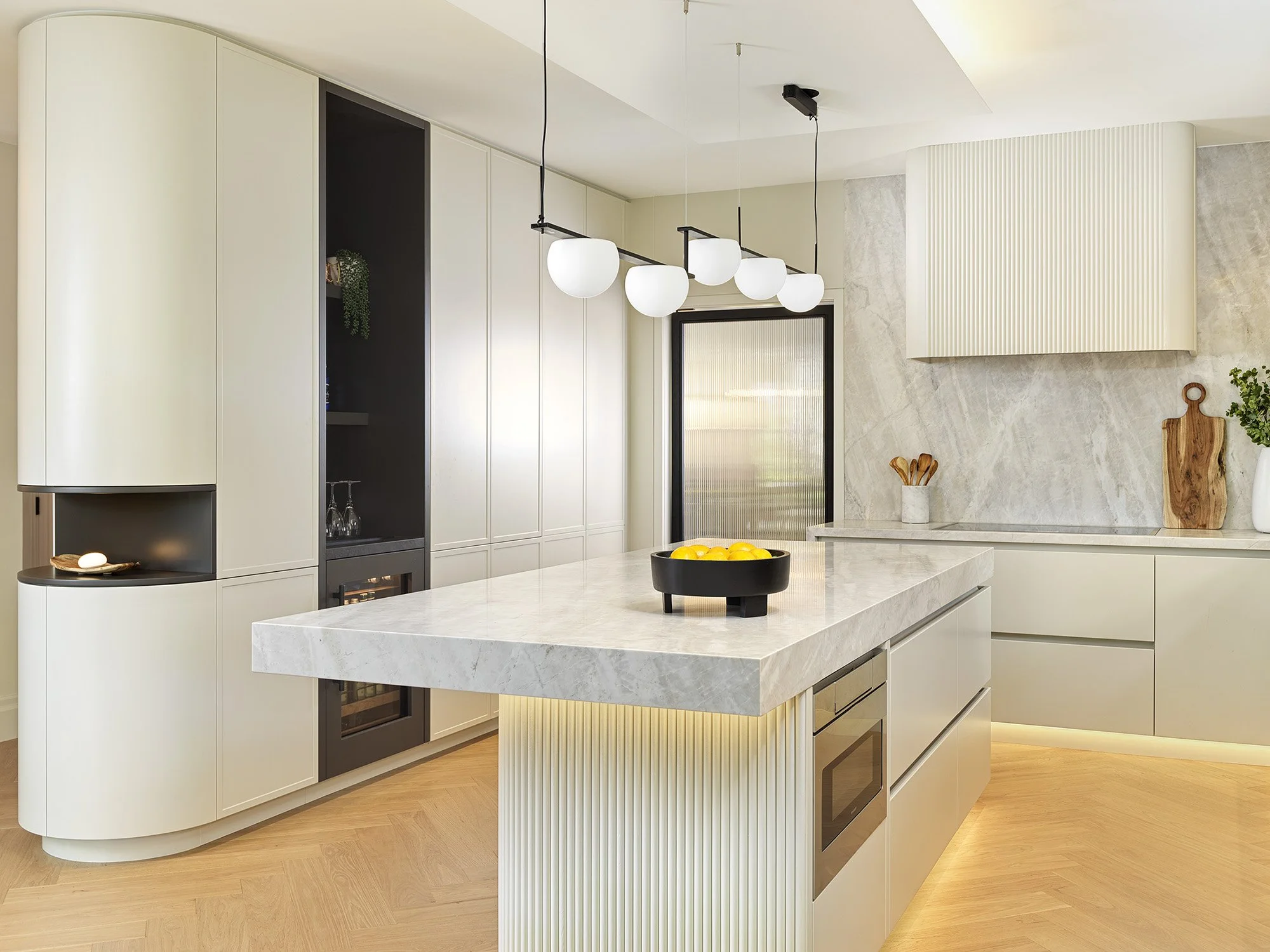 A REFRESHING COLLABORATION BETWEEN DESIGNER & CLIENT FEATURING EXCITING SHAPES, ELEMENTS & TEXTURES WITH A TACTFULLY RESTRAINED PALETTE. LEAVING FOR A CALM, FUNCTIONAL AND FAMILIAR FEELING SPACE.